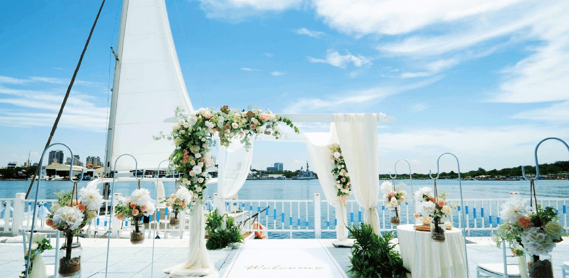 將獨特的婚禮風格學融入南部婚宴的特色,從細節到大格局,打造地中海式婚禮證婚服務,希望能打破大家對於婚禮的想像,也期望將每位新人的夢想能夠透過自己的手來呈現。